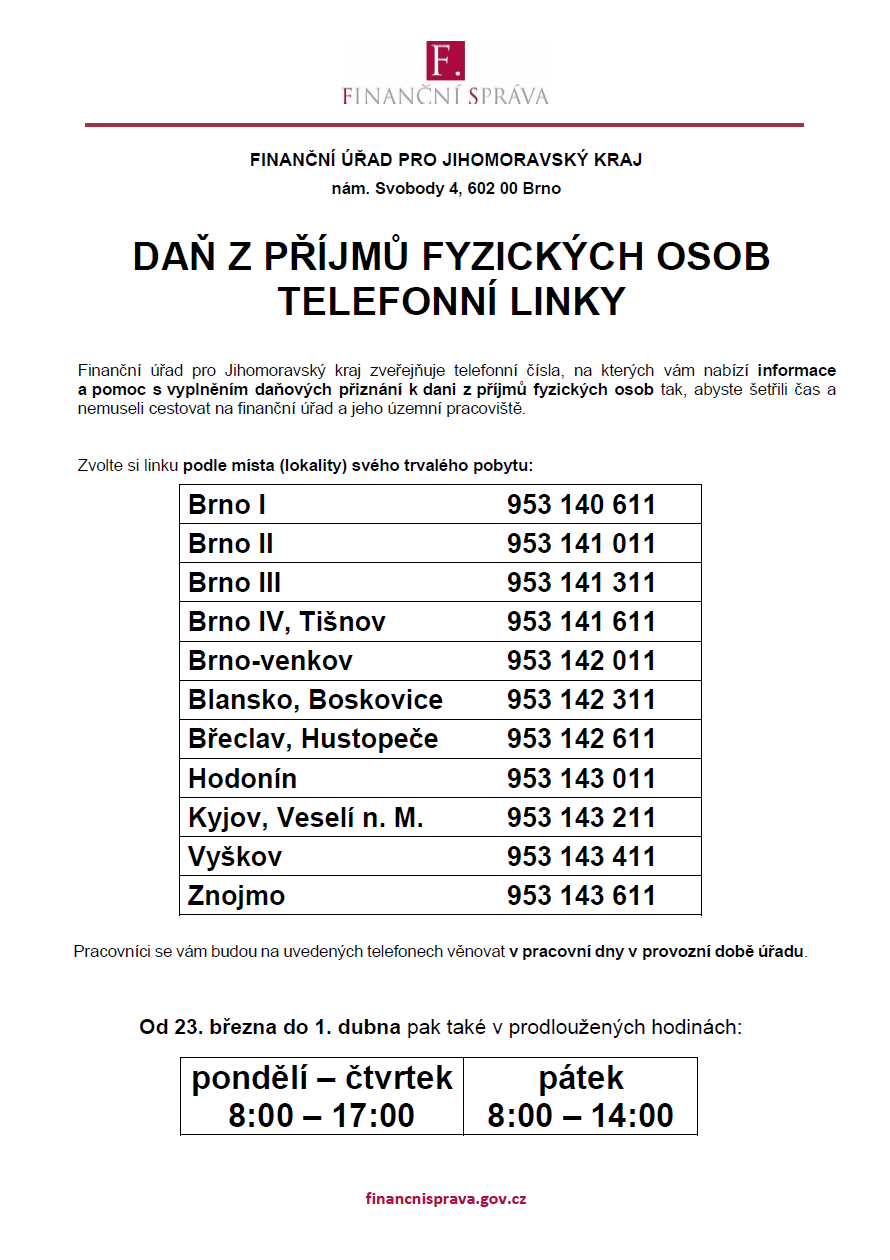 Výjezdy a infolinky v přílohách