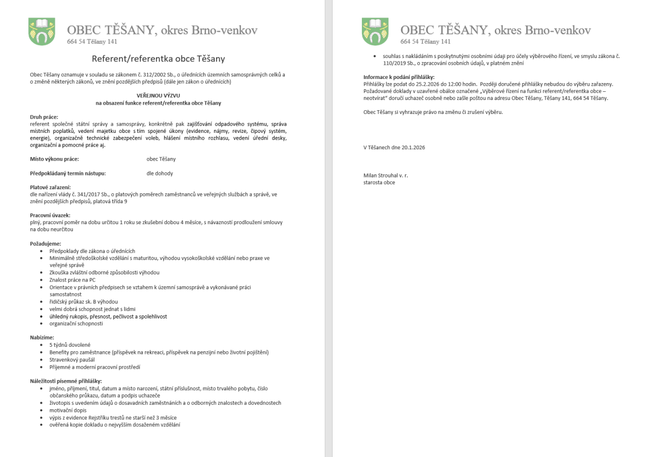 Referent/ka obce Těšany